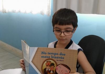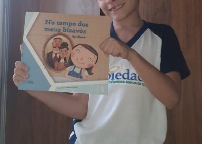 No 1º ano, que trabalhará com o livro “Roda que roda”, os alunos participaram de um piquenique virtual, lúdico e interativo. Já a turma do 2º ano recebeu para o lançamento uma visita muito especial. Dona Marília, avó do Júlio, contou histórias sobre como as famílias se transformaram ao longo dos anos. Ao final, a professora emocionou a todos, presenteando a turma com um filme que ela fez a partir das fotos que as crianças enviaram retratando momentos marcantes em família.
