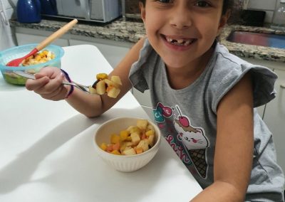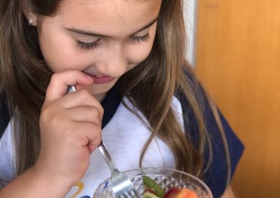 No Colégio Piedade, após estudarem sobre os hábitos saudáveis de alimentação, os estudantes do 2º ano do Ensino Fundamental receberam a tarefa de fazerem sua própria Fruit Salad e produzirem vídeos para compartilhar com a turma sua experiência. Além dos hábitos relacionados à saúde, o vocabulário relacionado às frutas e à alimentação saudável também foram abordagens feitas na aula.
